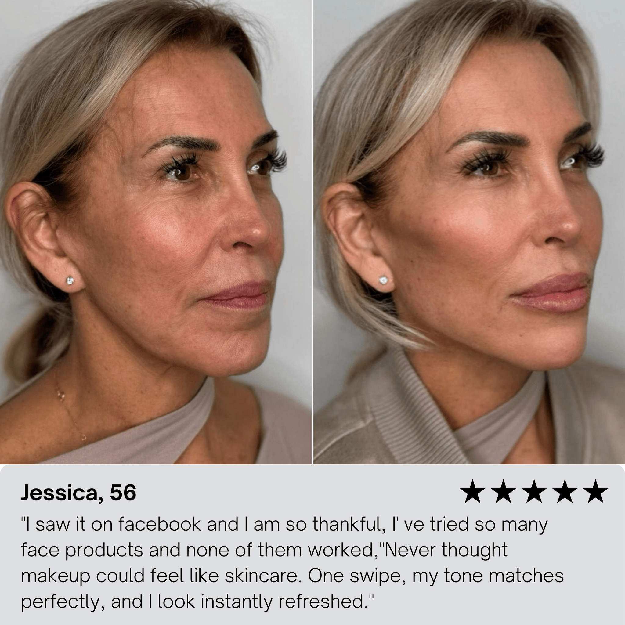 Our unique formula transforms from a rich lifting cream into a natural foundation that adapts to your skin tone. It hydrates, covers, and lifts — all in one step.